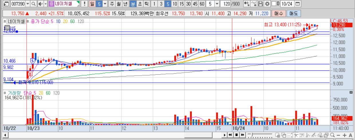 오전에 네이처셀이 대장주같아 보여서 샀고 4.73% 이득 벌었다. 기준 없었다. 대장주같아보이는건 그냥 가지고 있어야하나. 언제 익절을 해야할지 기준이 없다. 분할 매수 분할 매도를 해야하나. 여기서?